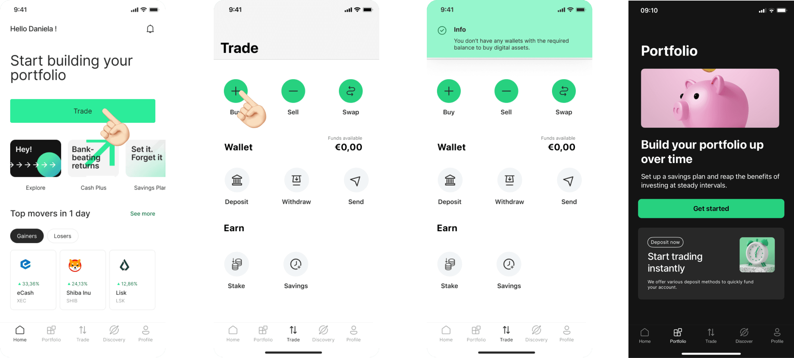 One of Bitpanda's most important metric is conversion from verified user to trader. With numbers not looking great, I was the designer that lead the initiative to reduce friction and create a flow that would change how people trade in the app.